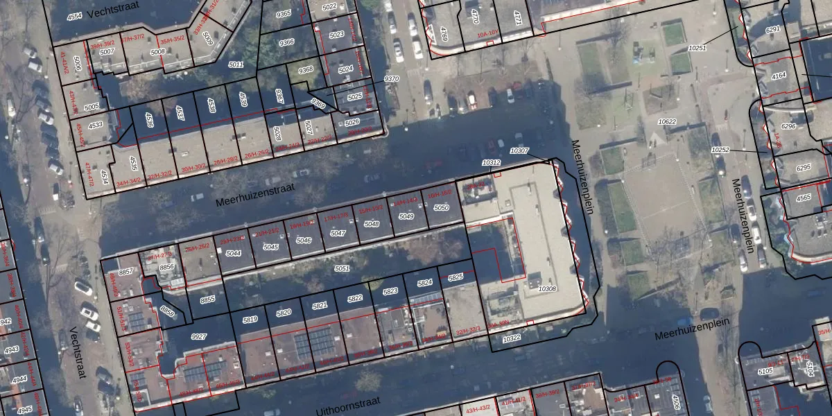 Meerhuizenplein 14-2 is gelegen op kadastraal perceel ASD18V5049. Deze kadastrale aanduiding is uniek en wordt gebruikt door het Kadaster om eigendomsrechten en andere zakelijke rechten vast te leggen. Het perceel maakt onderdeel uit van de kadastrale gemeente Amsterdam.