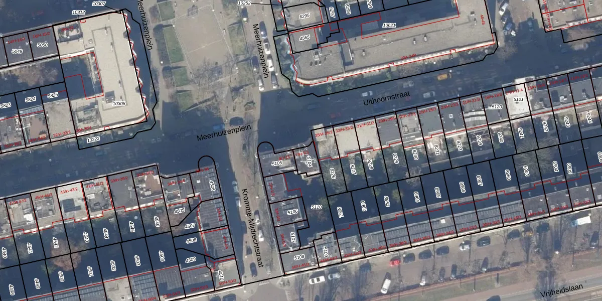 Meerhuizenplein 7-1 is gelegen op kadastraal perceel ASD18V5104. Deze kadastrale aanduiding is uniek en wordt gebruikt door het Kadaster om eigendomsrechten en andere zakelijke rechten vast te leggen. Het perceel maakt onderdeel uit van de kadastrale gemeente Amsterdam.