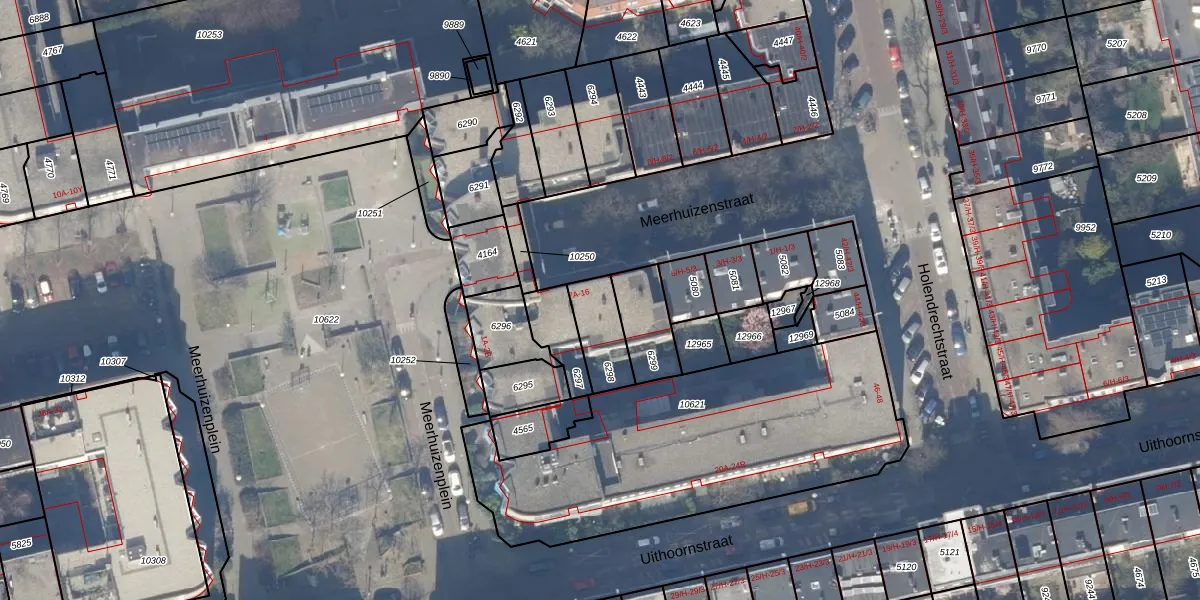 Meerhuizenstraat 11-G is gelegen op kadastraal perceel ASD18V6298. Deze kadastrale aanduiding is uniek en wordt gebruikt door het Kadaster om eigendomsrechten en andere zakelijke rechten vast te leggen. Het perceel maakt onderdeel uit van de kadastrale gemeente Amsterdam.