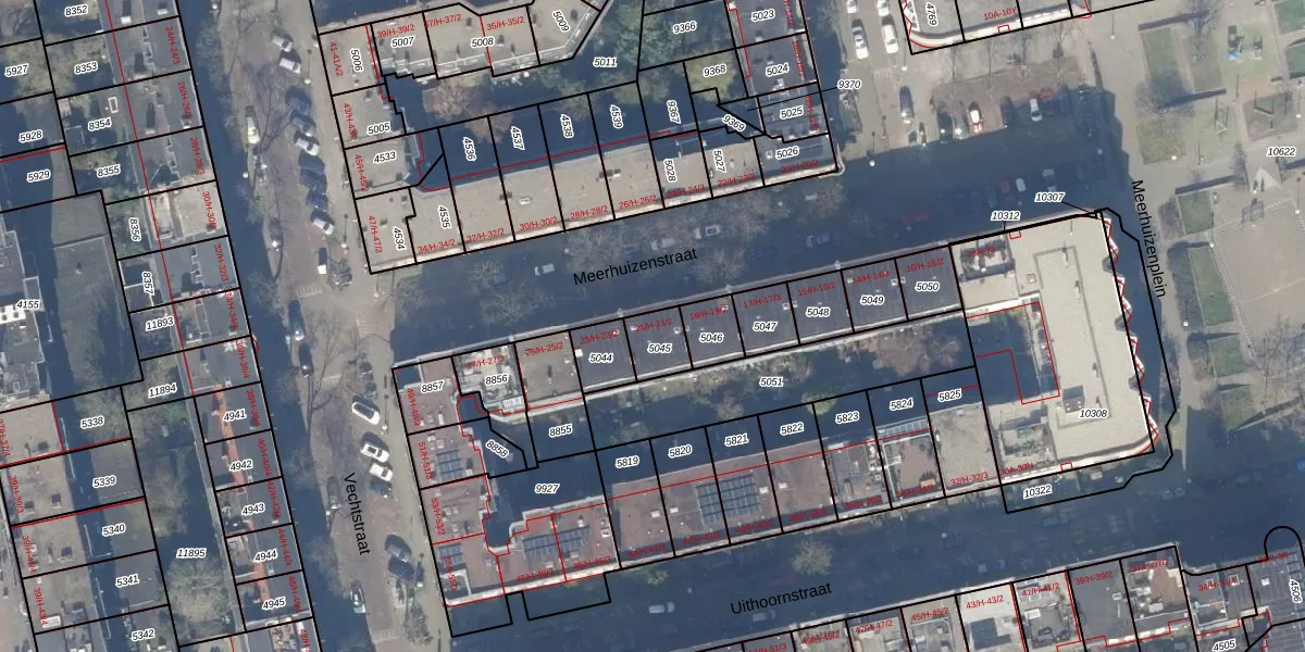 Meerhuizenstraat 21-1 is gelegen op kadastraal perceel ASD18V5045. Deze kadastrale aanduiding is uniek en wordt gebruikt door het Kadaster om eigendomsrechten en andere zakelijke rechten vast te leggen. Het perceel maakt onderdeel uit van de kadastrale gemeente Amsterdam.