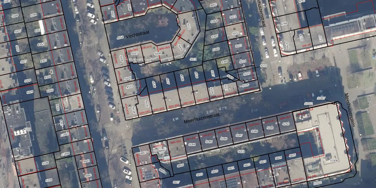 Meerhuizenstraat 28-H is gelegen op kadastraal perceel ASD18V4538. Deze kadastrale aanduiding is uniek en wordt gebruikt door het Kadaster om eigendomsrechten en andere zakelijke rechten vast te leggen. Het perceel maakt onderdeel uit van de kadastrale gemeente Amsterdam.
