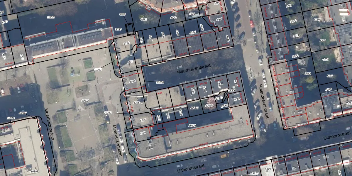 Meerhuizenstraat 7-C is gelegen op kadastraal perceel ASD18V6299. Deze kadastrale aanduiding is uniek en wordt gebruikt door het Kadaster om eigendomsrechten en andere zakelijke rechten vast te leggen. Het perceel maakt onderdeel uit van de kadastrale gemeente Amsterdam.