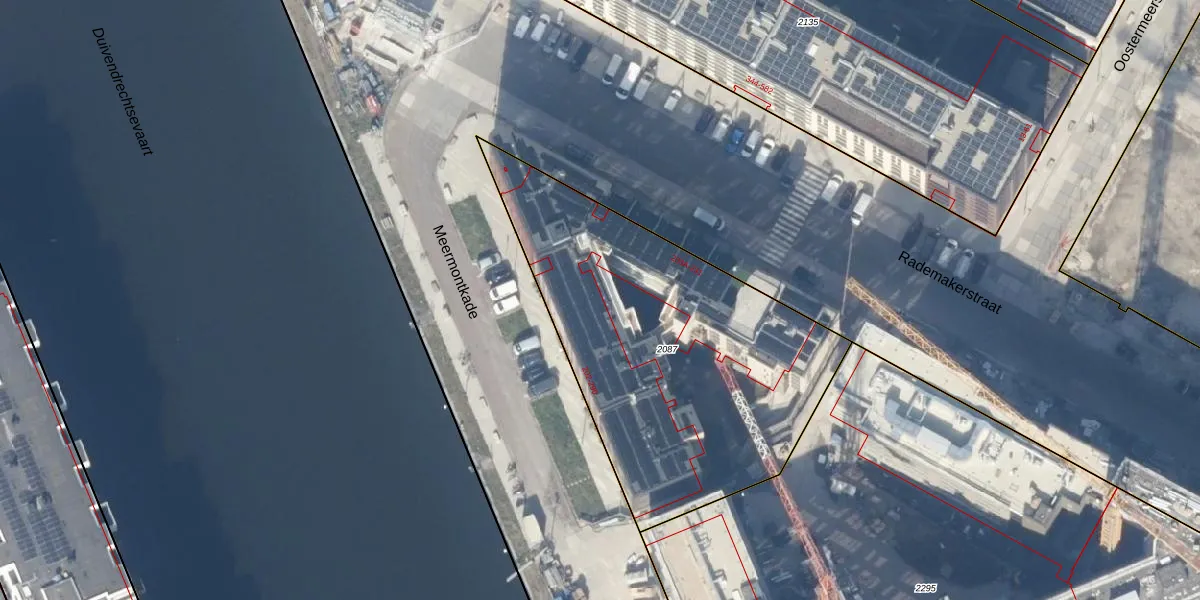 Het adres is gelegen op perceel 2087 in de sectie AG en de kadastrale gemeente Amsterdam. De kadastrale aanduiding is aldus ASD27-AG-2087. Het perceel is kleiner dan gemiddeld in Amsterdam. Het perceel is 1800 m² groot, terwijl het gemiddelde ligt op 3544,61 m². De grootste perceeloppervlakte in de kadastrale gemeente is 18,4 ha. De kleinste oppervlakte bedraagt 1 m². Op het perceel liggen in totaal 61 adressen. In de Basisregistratie Kadaster (BRK) werden de grenzen van het perceel geregistreerd op 26-05-2023.