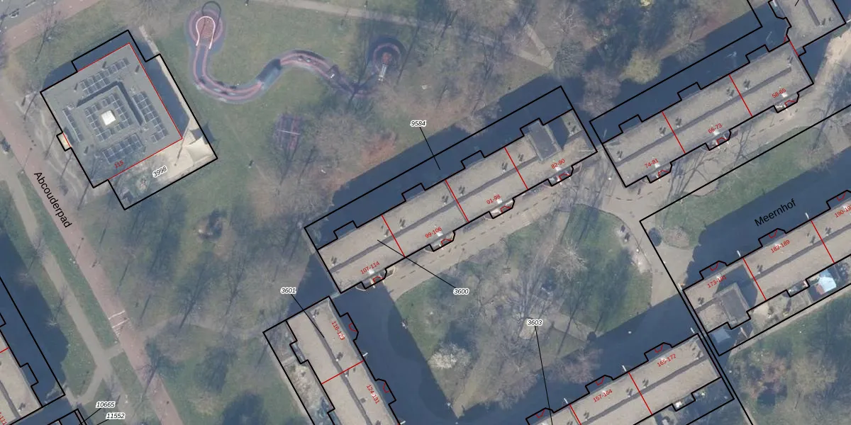 Het perceel waarop Meernhof 101 staat heeft een oppervlakte van 885 m². Dit is een groot perceel. De perceeloppervlakte wordt geregistreerd door het Kadaster. Gedetailleerde informatie over de maten van dit perceel kunt u vinden in het rapport Kadastrale kaart met maatvoering van Meernhof 101.