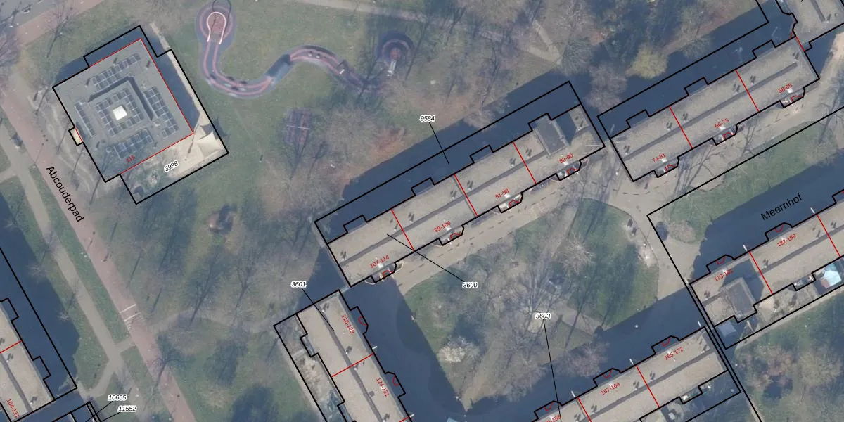 Het perceel waarop Meernhof 103 staat heeft een oppervlakte van 885 m². Dit is een groot perceel. De perceeloppervlakte wordt geregistreerd door het Kadaster. Gedetailleerde informatie over de maten van dit perceel kunt u vinden in het rapport Kadastrale kaart met maatvoering van Meernhof 103.