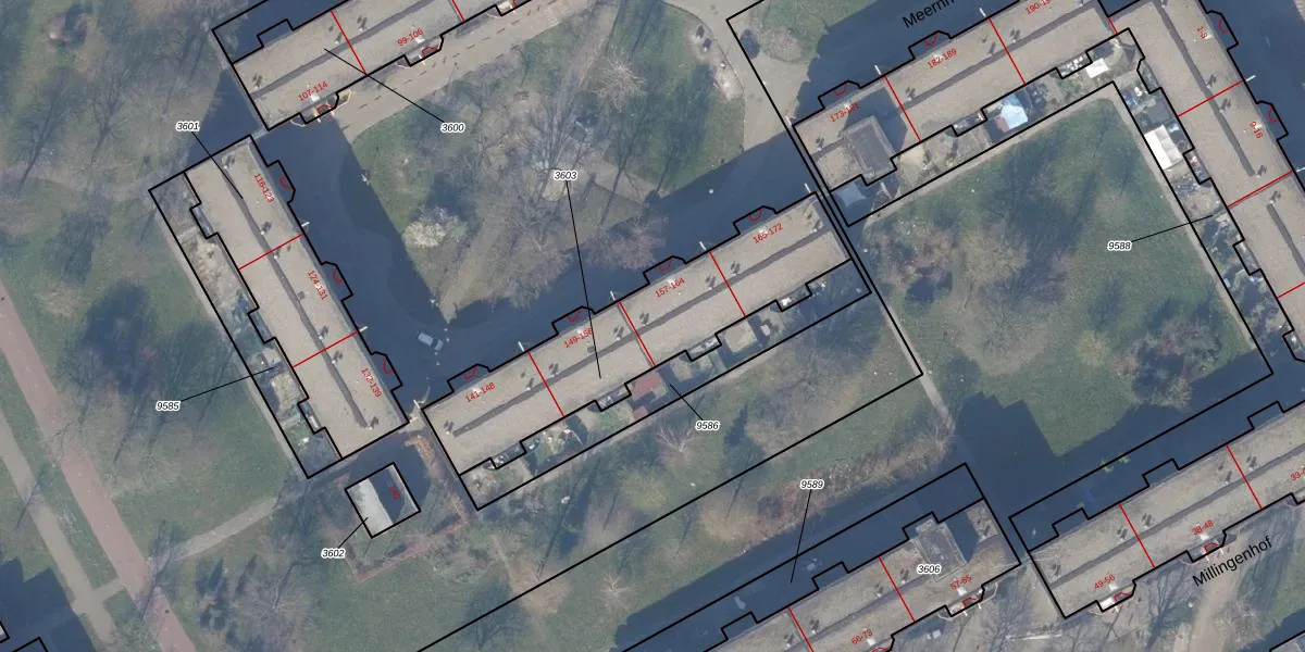Het perceel waarop Meernhof 158 staat heeft een oppervlakte van 886 m². Dit is een groot perceel. De perceeloppervlakte wordt geregistreerd door het Kadaster. Gedetailleerde informatie over de maten van dit perceel kunt u vinden in het rapport Kadastrale kaart met maatvoering van Meernhof 158.