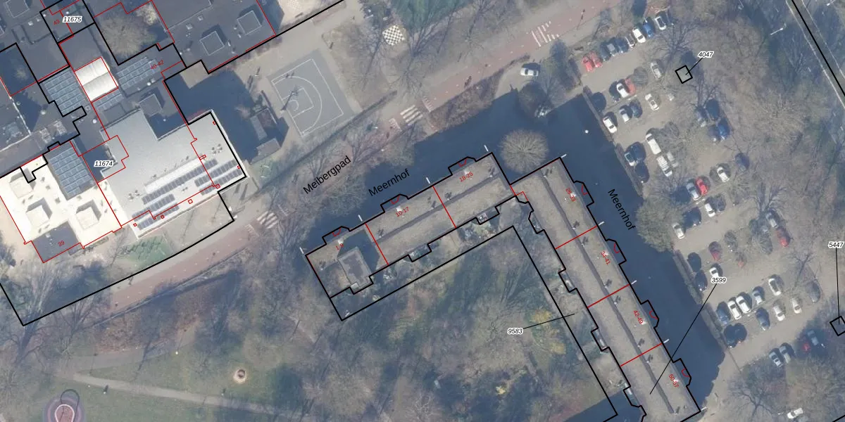 Het perceel waarop Meernhof 17 staat heeft een oppervlakte van 2200 m². Dit is een zeer groot perceel. De perceeloppervlakte wordt geregistreerd door het Kadaster. Gedetailleerde informatie over de maten van dit perceel kunt u vinden in het rapport Kadastrale kaart met maatvoering van Meernhof 17.