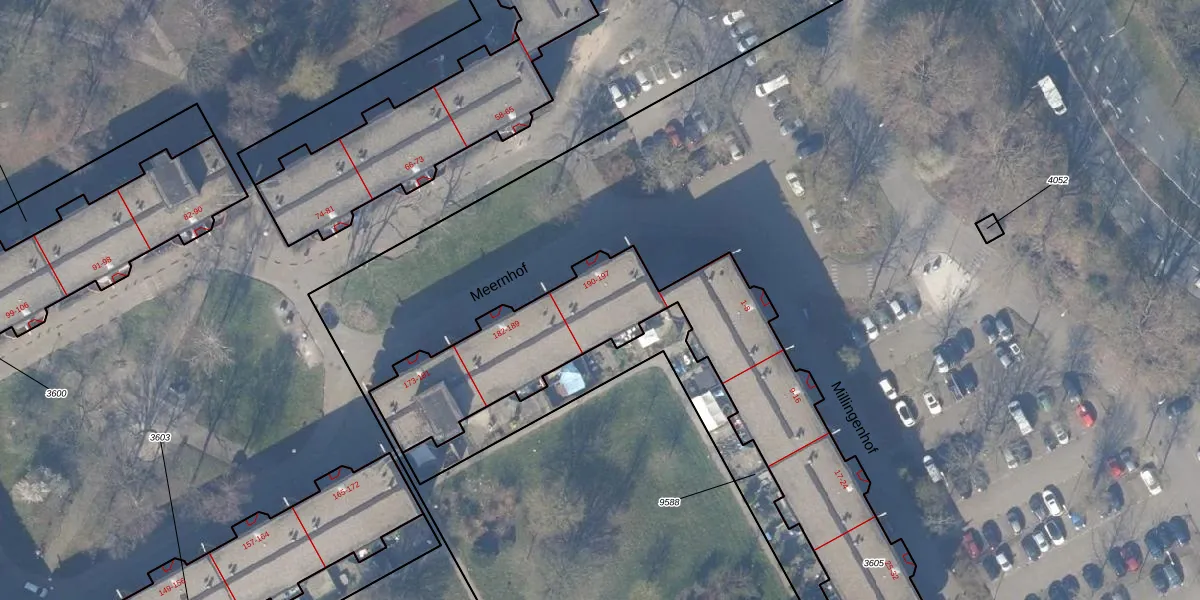 Het perceel waarop Meernhof 194 staat heeft een oppervlakte van 2200 m². Dit is een zeer groot perceel. De perceeloppervlakte wordt geregistreerd door het Kadaster. Gedetailleerde informatie over de maten van dit perceel kunt u vinden in het rapport Kadastrale kaart met maatvoering van Meernhof 194.