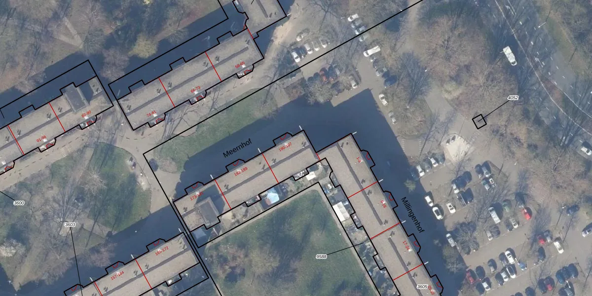 Meernhof 197 is gelegen op kadastraal perceel WPK02L3605. Deze kadastrale aanduiding is uniek en wordt gebruikt door het Kadaster om eigendomsrechten en andere zakelijke rechten vast te leggen. Het perceel maakt onderdeel uit van de kadastrale gemeente Weesperkarspel.