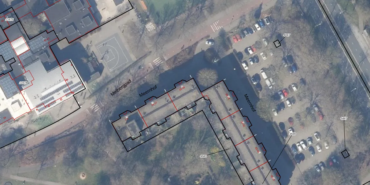 Het perceel waarop Meernhof 24 staat heeft een oppervlakte van 2200 m². Dit is een zeer groot perceel. De perceeloppervlakte wordt geregistreerd door het Kadaster. Gedetailleerde informatie over de maten van dit perceel kunt u vinden in het rapport Kadastrale kaart met maatvoering van Meernhof 24.