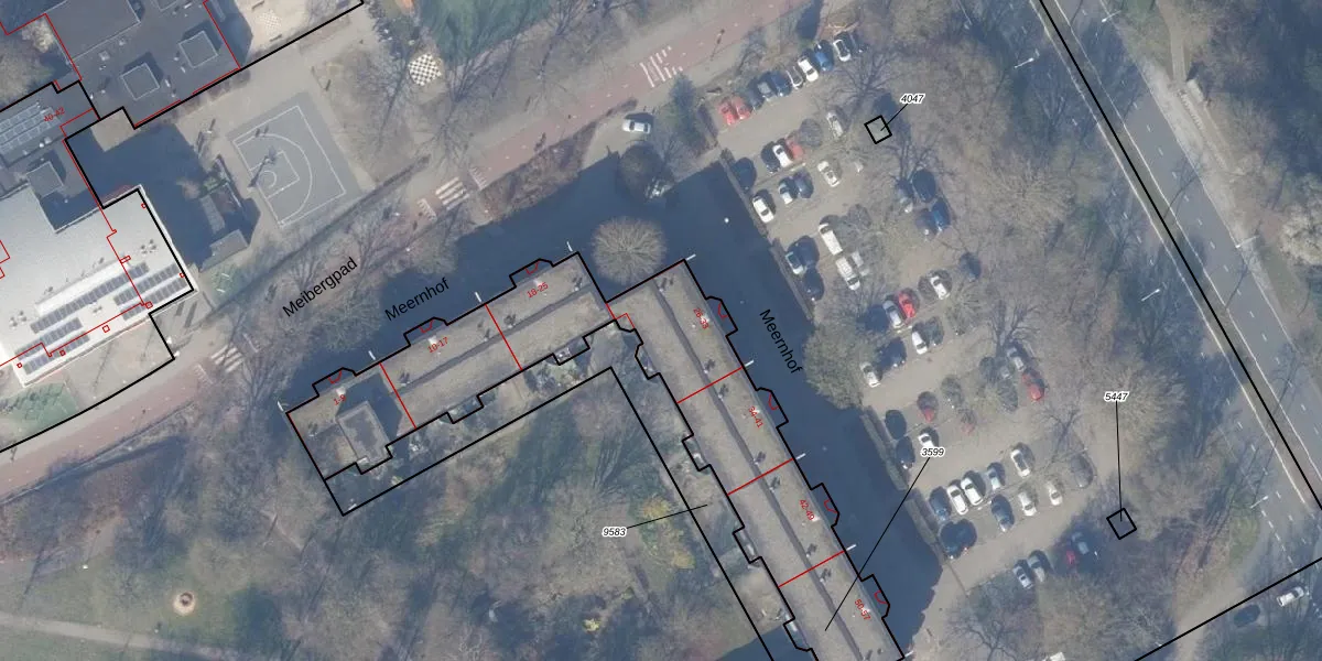 Het perceel waarop Meernhof 29 staat heeft een oppervlakte van 2200 m². Dit is een zeer groot perceel. De perceeloppervlakte wordt geregistreerd door het Kadaster. Gedetailleerde informatie over de maten van dit perceel kunt u vinden in het rapport Kadastrale kaart met maatvoering van Meernhof 29.