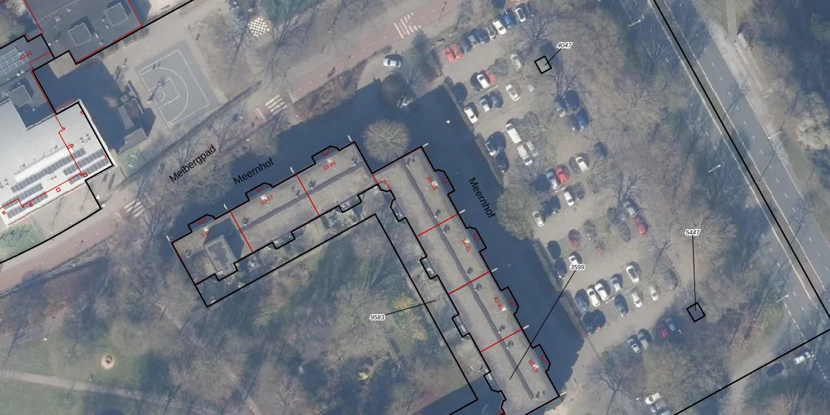 Het perceel waarop Meernhof 32 staat heeft een oppervlakte van 2200 m². Dit is een zeer groot perceel. De perceeloppervlakte wordt geregistreerd door het Kadaster. Gedetailleerde informatie over de maten van dit perceel kunt u vinden in het rapport Kadastrale kaart met maatvoering van Meernhof 32.