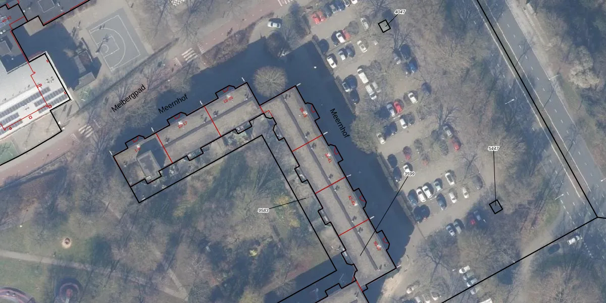 Het perceel waarop Meernhof 34 staat heeft een oppervlakte van 2200 m². Dit is een zeer groot perceel. De perceeloppervlakte wordt geregistreerd door het Kadaster. Gedetailleerde informatie over de maten van dit perceel kunt u vinden in het rapport Kadastrale kaart met maatvoering van Meernhof 34.