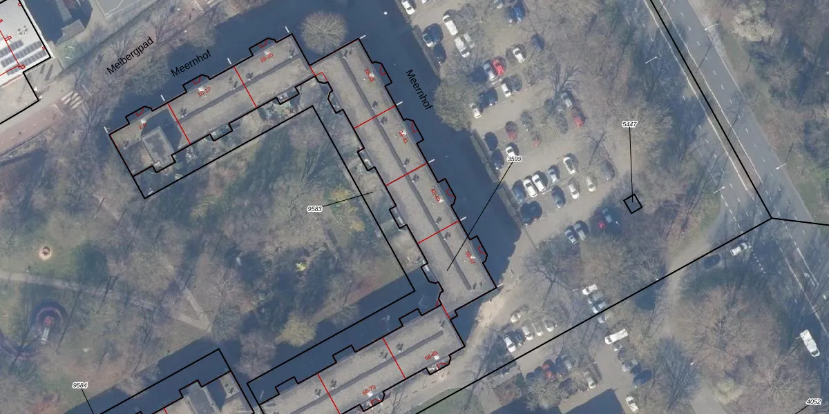 Het perceel waarop Meernhof 46 staat heeft een oppervlakte van 2200 m². Dit is een zeer groot perceel. De perceeloppervlakte wordt geregistreerd door het Kadaster. Gedetailleerde informatie over de maten van dit perceel kunt u vinden in het rapport Kadastrale kaart met maatvoering van Meernhof 46.