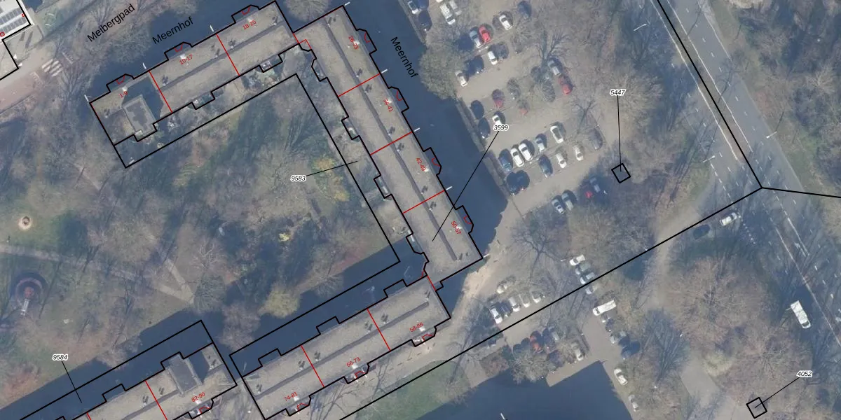 Het perceel waarop Meernhof 50 staat heeft een oppervlakte van 2200 m². Dit is een zeer groot perceel. De perceeloppervlakte wordt geregistreerd door het Kadaster. Gedetailleerde informatie over de maten van dit perceel kunt u vinden in het rapport Kadastrale kaart met maatvoering van Meernhof 50.