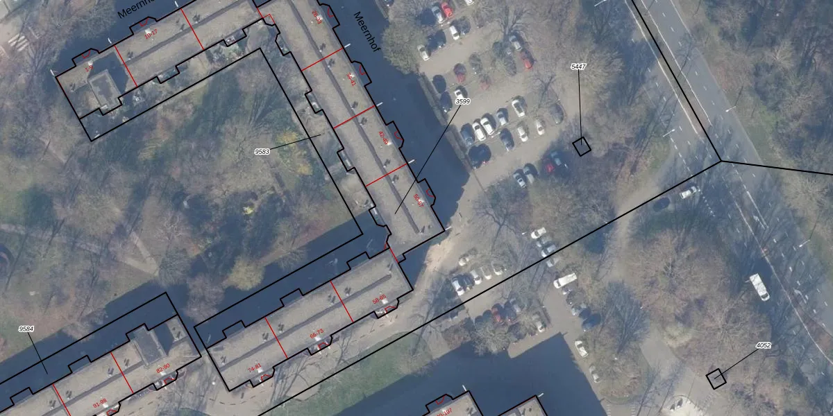 Het perceel waarop Meernhof 57 staat heeft een oppervlakte van 2200 m². Dit is een zeer groot perceel. De perceeloppervlakte wordt geregistreerd door het Kadaster. Gedetailleerde informatie over de maten van dit perceel kunt u vinden in het rapport Kadastrale kaart met maatvoering van Meernhof 57.