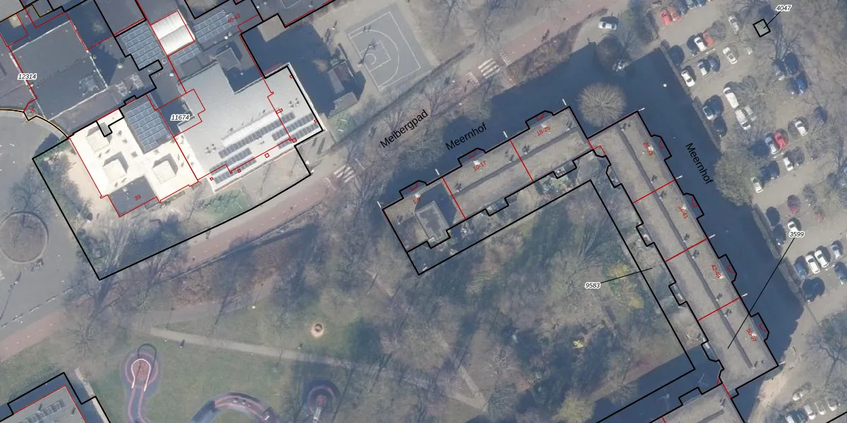 Meernhof 7 is gelegen op kadastraal perceel WPK02L3599. Deze kadastrale aanduiding is uniek en wordt gebruikt door het Kadaster om eigendomsrechten en andere zakelijke rechten vast te leggen. Het perceel maakt onderdeel uit van de kadastrale gemeente Weesperkarspel.