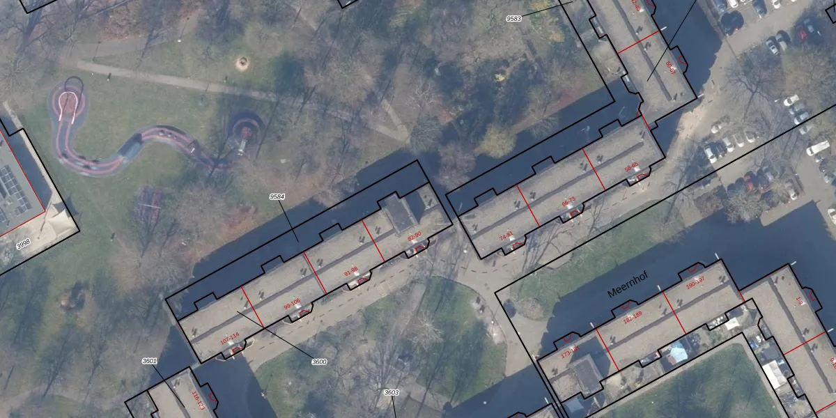 Het perceel waarop Meernhof 82 staat heeft een oppervlakte van 885 m². Dit is een groot perceel. De perceeloppervlakte wordt geregistreerd door het Kadaster. Gedetailleerde informatie over de maten van dit perceel kunt u vinden in het rapport Kadastrale kaart met maatvoering van Meernhof 82.