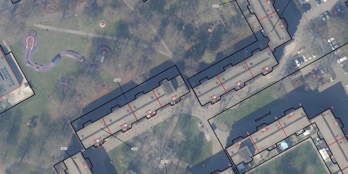 Het perceel waarop Meernhof 83 staat heeft een oppervlakte van 885 m². Dit is een groot perceel. De perceeloppervlakte wordt geregistreerd door het Kadaster. Gedetailleerde informatie over de maten van dit perceel kunt u vinden in het rapport Kadastrale kaart met maatvoering van Meernhof 83.