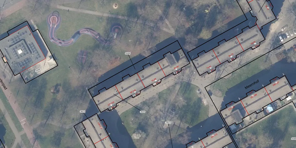 Het perceel waarop Meernhof 94 staat heeft een oppervlakte van 885 m². Dit is een groot perceel. De perceeloppervlakte wordt geregistreerd door het Kadaster. Gedetailleerde informatie over de maten van dit perceel kunt u vinden in het rapport Kadastrale kaart met maatvoering van Meernhof 94.