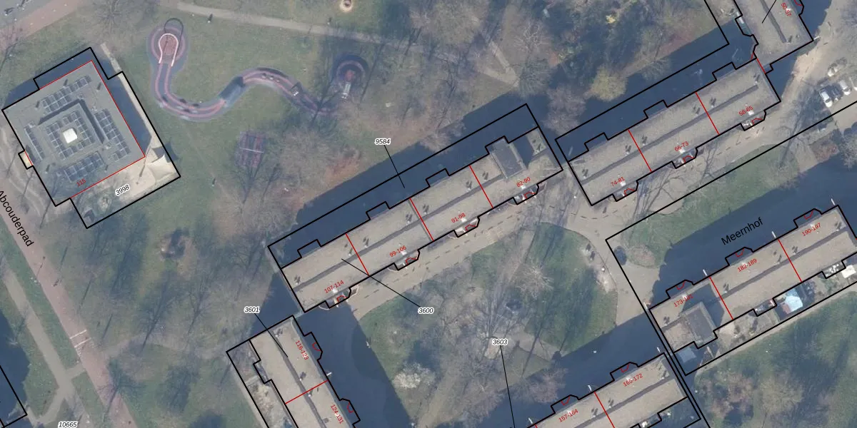 Het perceel waarop Meernhof 97 staat heeft een oppervlakte van 885 m². Dit is een groot perceel. De perceeloppervlakte wordt geregistreerd door het Kadaster. Gedetailleerde informatie over de maten van dit perceel kunt u vinden in het rapport Kadastrale kaart met maatvoering van Meernhof 97.