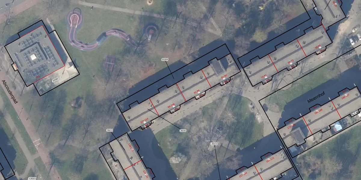 Het perceel waarop Meernhof 98 staat heeft een oppervlakte van 885 m². Dit is een groot perceel. De perceeloppervlakte wordt geregistreerd door het Kadaster. Gedetailleerde informatie over de maten van dit perceel kunt u vinden in het rapport Kadastrale kaart met maatvoering van Meernhof 98.