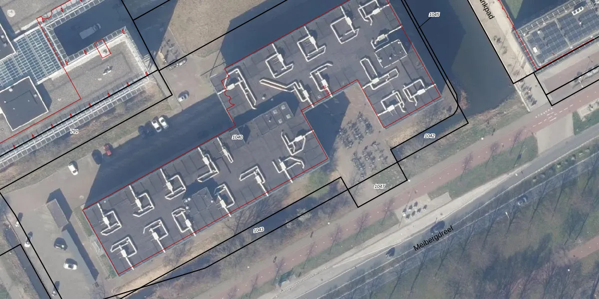 Het perceel waarop Meibergdreef 200 staat heeft een oppervlakte van 8361 m². Dit is een zeer groot perceel. De perceeloppervlakte wordt geregistreerd door het Kadaster. Gedetailleerde informatie over de maten van dit perceel kunt u vinden in het rapport Kadastrale kaart met maatvoering van Meibergdreef 200.