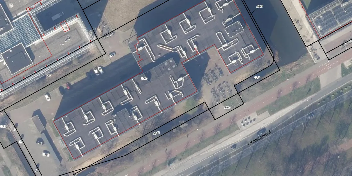 Het perceel waarop Meibergdreef 224 staat heeft een oppervlakte van 8361 m². Dit is een zeer groot perceel. De perceeloppervlakte wordt geregistreerd door het Kadaster. Gedetailleerde informatie over de maten van dit perceel kunt u vinden in het rapport Kadastrale kaart met maatvoering van Meibergdreef 224.
