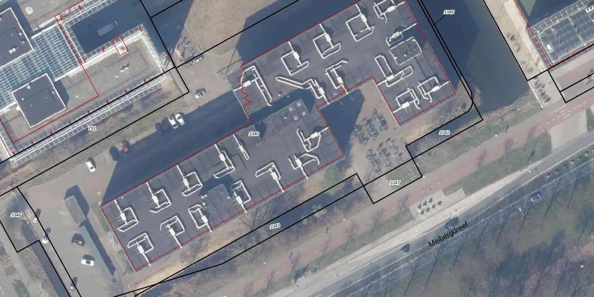 Het perceel waarop Meibergdreef 408 staat heeft een oppervlakte van 8361 m². Dit is een zeer groot perceel. De perceeloppervlakte wordt geregistreerd door het Kadaster. Gedetailleerde informatie over de maten van dit perceel kunt u vinden in het rapport Kadastrale kaart met maatvoering van Meibergdreef 408.