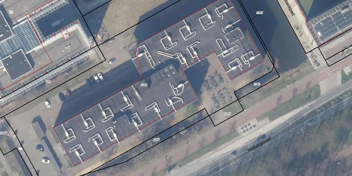 Het perceel waarop Meibergdreef 548 staat heeft een oppervlakte van 8361 m². Dit is een zeer groot perceel. De perceeloppervlakte wordt geregistreerd door het Kadaster. Gedetailleerde informatie over de maten van dit perceel kunt u vinden in het rapport Kadastrale kaart met maatvoering van Meibergdreef 548.