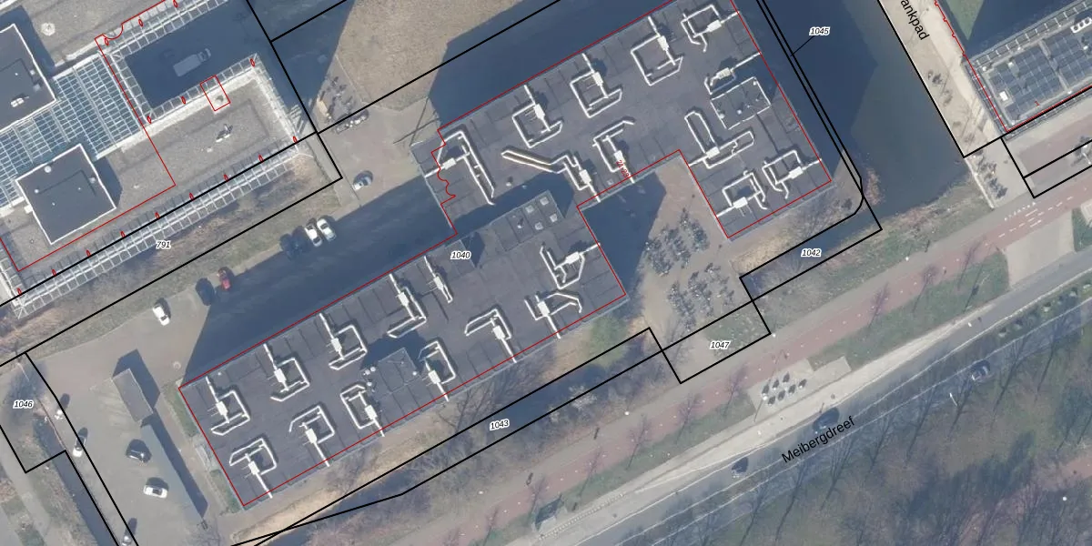 Het perceel waarop Meibergdreef 566 staat heeft een oppervlakte van 8361 m². Dit is een zeer groot perceel. De perceeloppervlakte wordt geregistreerd door het Kadaster. Gedetailleerde informatie over de maten van dit perceel kunt u vinden in het rapport Kadastrale kaart met maatvoering van Meibergdreef 566.