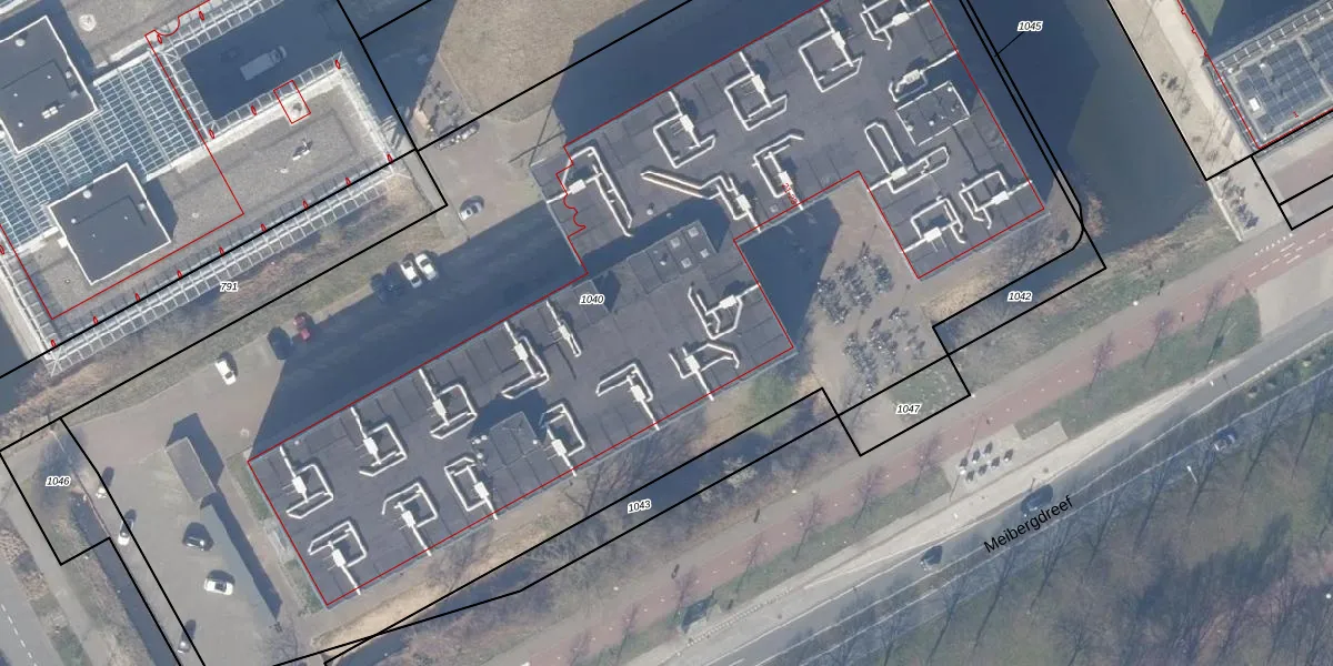 Het perceel waarop Meibergdreef 600 staat heeft een oppervlakte van 8361 m². Dit is een zeer groot perceel. De perceeloppervlakte wordt geregistreerd door het Kadaster. Gedetailleerde informatie over de maten van dit perceel kunt u vinden in het rapport Kadastrale kaart met maatvoering van Meibergdreef 600.