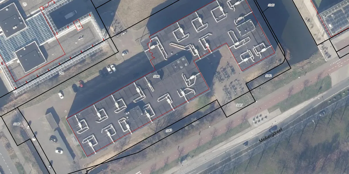 Het perceel waarop Meibergdreef 612 staat heeft een oppervlakte van 8361 m². Dit is een zeer groot perceel. De perceeloppervlakte wordt geregistreerd door het Kadaster. Gedetailleerde informatie over de maten van dit perceel kunt u vinden in het rapport Kadastrale kaart met maatvoering van Meibergdreef 612.
