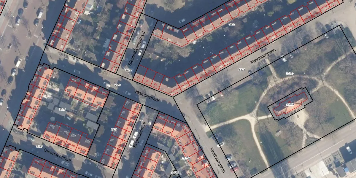 Het perceel waarop Meidoornplein 21-H staat heeft een oppervlakte van 4133 m². Dit is een zeer groot perceel. De perceeloppervlakte wordt geregistreerd door het Kadaster. Gedetailleerde informatie over de maten van dit perceel kunt u vinden in het rapport Kadastrale kaart met maatvoering van Meidoornplein 21-H.