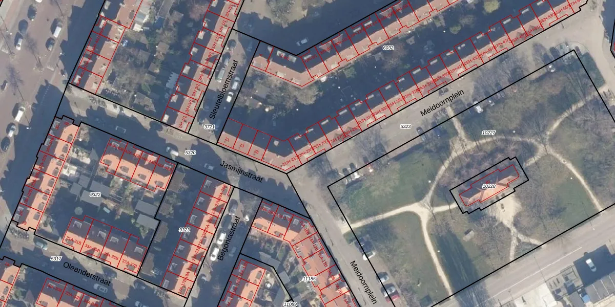 Het perceel waarop Meidoornplein 23-1 staat heeft een oppervlakte van 4133 m². Dit is een zeer groot perceel. De perceeloppervlakte wordt geregistreerd door het Kadaster. Gedetailleerde informatie over de maten van dit perceel kunt u vinden in het rapport Kadastrale kaart met maatvoering van Meidoornplein 23-1.