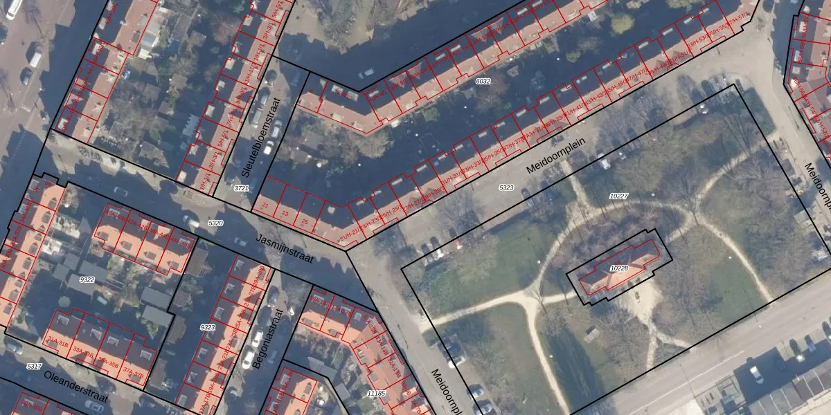 Het perceel waarop Meidoornplein 27-1 staat heeft een oppervlakte van 4133 m². Dit is een zeer groot perceel. De perceeloppervlakte wordt geregistreerd door het Kadaster. Gedetailleerde informatie over de maten van dit perceel kunt u vinden in het rapport Kadastrale kaart met maatvoering van Meidoornplein 27-1.