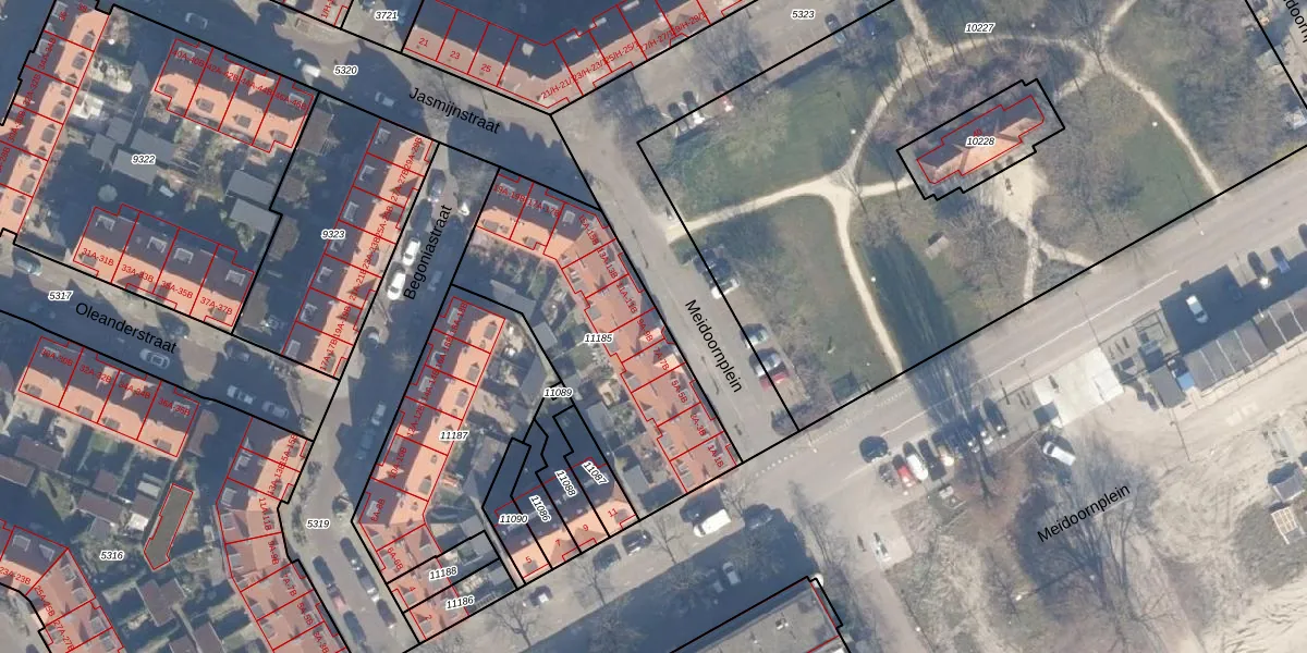 Meidoornplein 9-B is gelegen op kadastraal perceel ASD07K11185. Deze kadastrale aanduiding is uniek en wordt gebruikt door het Kadaster om eigendomsrechten en andere zakelijke rechten vast te leggen. Het perceel maakt onderdeel uit van de kadastrale gemeente Amsterdam.