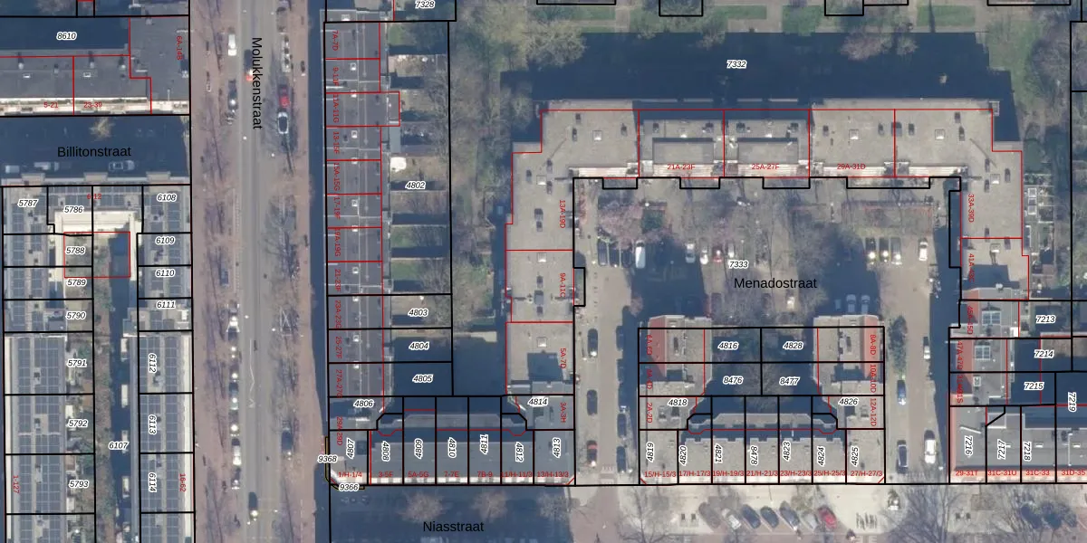 Menadostraat 11-A is gelegen op kadastraal perceel ASD19W7332. Deze kadastrale aanduiding is uniek en wordt gebruikt door het Kadaster om eigendomsrechten en andere zakelijke rechten vast te leggen. Het perceel maakt onderdeel uit van de kadastrale gemeente Amsterdam.