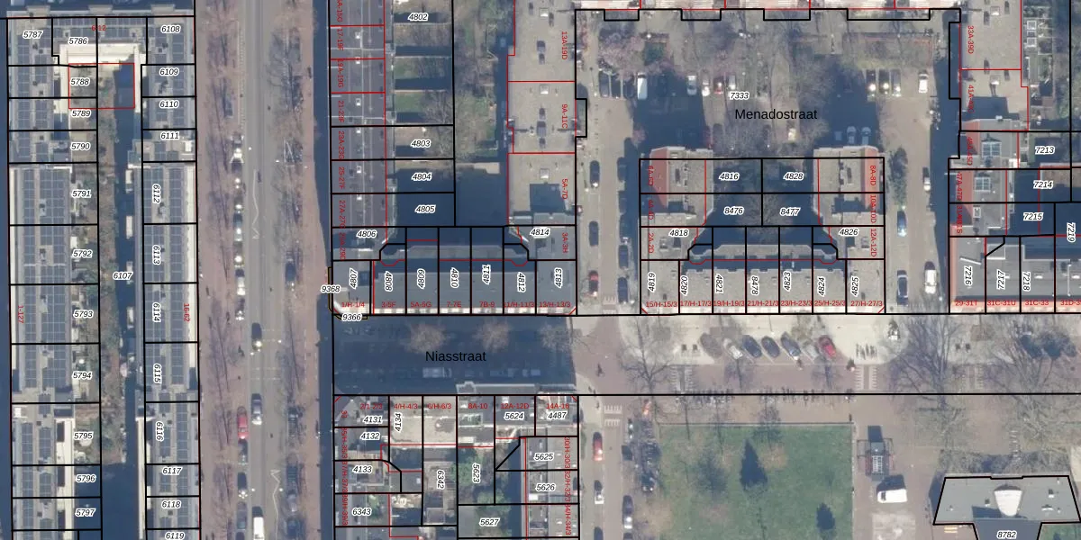 Menadostraat 3-F is gelegen op kadastraal perceel ASD19W4813. Deze kadastrale aanduiding is uniek en wordt gebruikt door het Kadaster om eigendomsrechten en andere zakelijke rechten vast te leggen. Het perceel maakt onderdeel uit van de kadastrale gemeente Amsterdam.