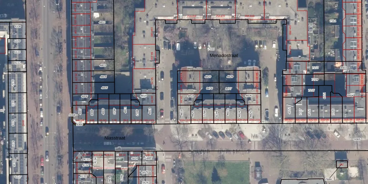 Menadostraat 4-D is gelegen op kadastraal perceel ASD19W8476. Deze kadastrale aanduiding is uniek en wordt gebruikt door het Kadaster om eigendomsrechten en andere zakelijke rechten vast te leggen. Het perceel maakt onderdeel uit van de kadastrale gemeente Amsterdam.