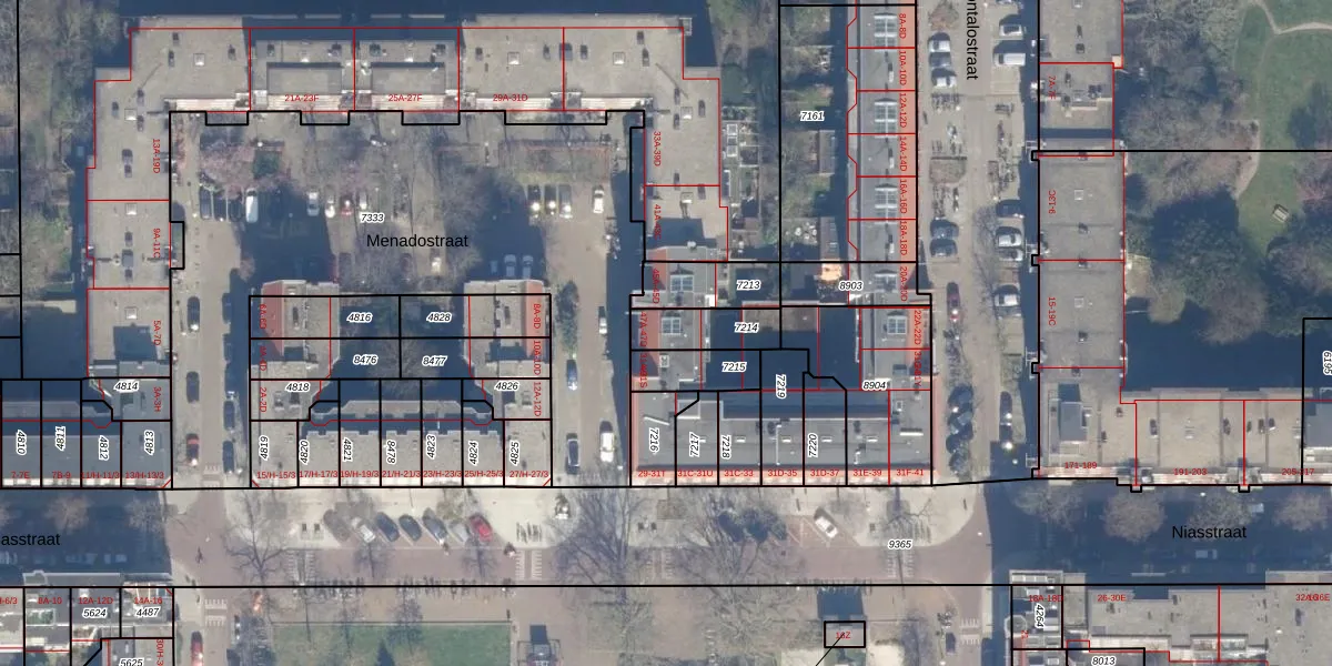 Menadostraat 47-A is gelegen op kadastraal perceel ASD19W7214. Deze kadastrale aanduiding is uniek en wordt gebruikt door het Kadaster om eigendomsrechten en andere zakelijke rechten vast te leggen. Het perceel maakt onderdeel uit van de kadastrale gemeente Amsterdam.
