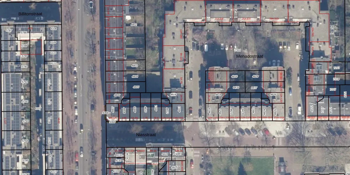 Menadostraat 5-C is gelegen op kadastraal perceel ASD19W7332. Deze kadastrale aanduiding is uniek en wordt gebruikt door het Kadaster om eigendomsrechten en andere zakelijke rechten vast te leggen. Het perceel maakt onderdeel uit van de kadastrale gemeente Amsterdam.