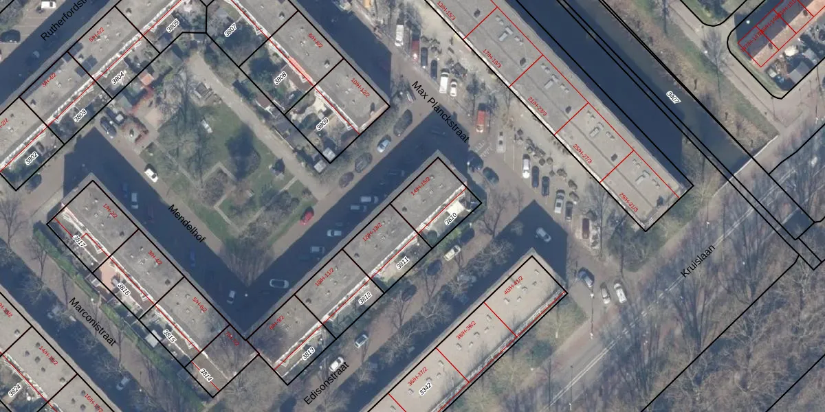 Mendelhof 14-2 is gelegen op kadastraal perceel WTG02B3810. Deze kadastrale aanduiding is uniek en wordt gebruikt door het Kadaster om eigendomsrechten en andere zakelijke rechten vast te leggen. Het perceel maakt onderdeel uit van de kadastrale gemeente Watergraafsmeer.