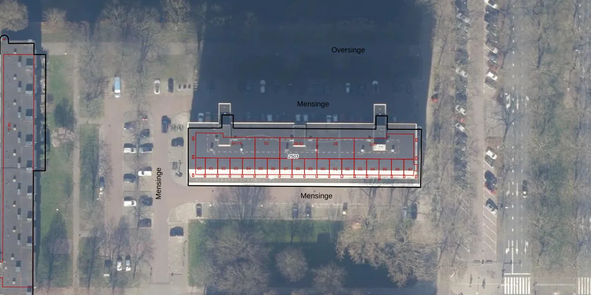 Het perceel waarop Mensinge 39 staat heeft een oppervlakte van 1563 m². Dit is een zeer groot perceel. De perceeloppervlakte wordt geregistreerd door het Kadaster. Gedetailleerde informatie over de maten van dit perceel kunt u vinden in het rapport Kadastrale kaart met maatvoering van Mensinge 39.