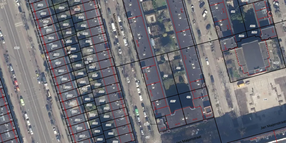 Het perceel waarop Mercatorstraat 26-C staat heeft een oppervlakte van 600 m². Dit is een groot perceel. De perceeloppervlakte wordt geregistreerd door het Kadaster. Gedetailleerde informatie over de maten van dit perceel kunt u vinden in het rapport Kadastrale kaart met maatvoering van Mercatorstraat 26-C.