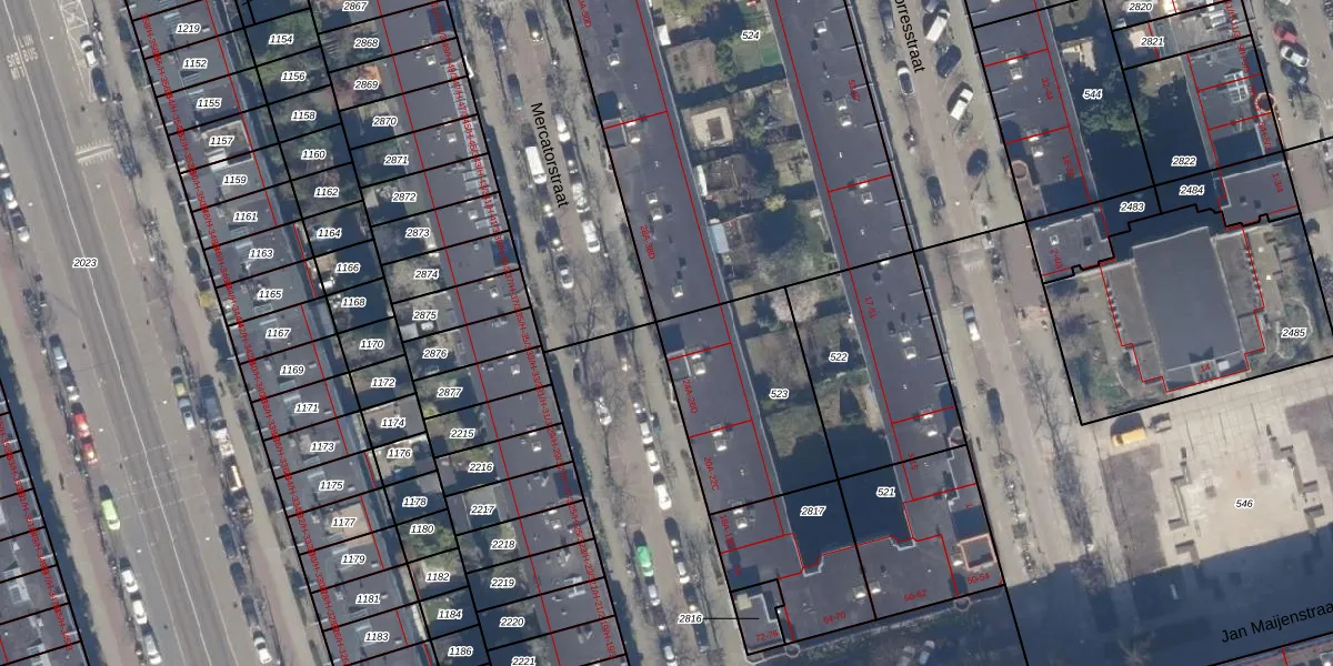 Het perceel waarop Mercatorstraat 28-B staat heeft een oppervlakte van 600 m². Dit is een groot perceel. De perceeloppervlakte wordt geregistreerd door het Kadaster. Gedetailleerde informatie over de maten van dit perceel kunt u vinden in het rapport Kadastrale kaart met maatvoering van Mercatorstraat 28-B.