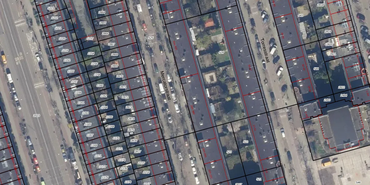 Het perceel waarop Mercatorstraat 36-A staat heeft een oppervlakte van 2400 m². Dit is een zeer groot perceel. De perceeloppervlakte wordt geregistreerd door het Kadaster. Gedetailleerde informatie over de maten van dit perceel kunt u vinden in het rapport Kadastrale kaart met maatvoering van Mercatorstraat 36-A.