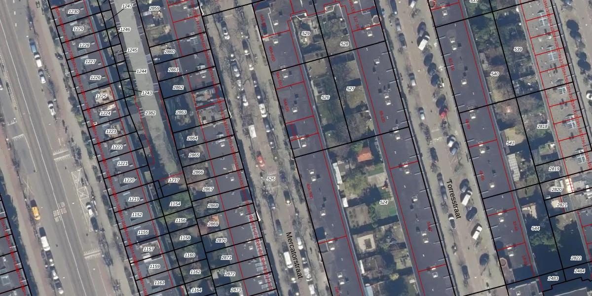 Het perceel waarop Mercatorstraat 50-C staat heeft een oppervlakte van 600 m². Dit is een groot perceel. De perceeloppervlakte wordt geregistreerd door het Kadaster. Gedetailleerde informatie over de maten van dit perceel kunt u vinden in het rapport Kadastrale kaart met maatvoering van Mercatorstraat 50-C.