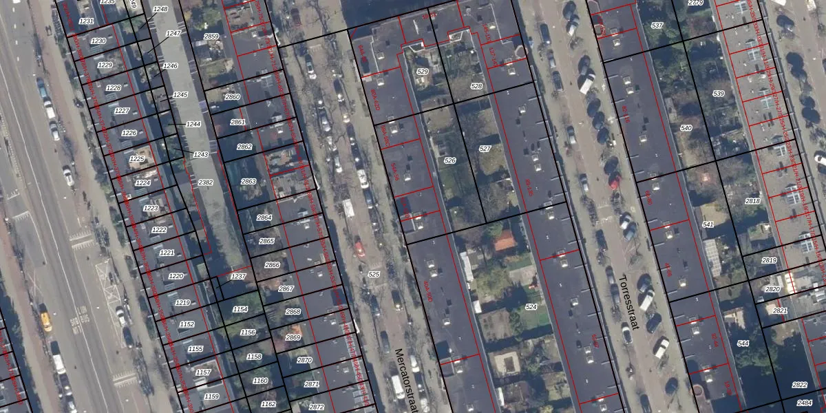 Het perceel waarop Mercatorstraat 52-C staat heeft een oppervlakte van 600 m². Dit is een groot perceel. De perceeloppervlakte wordt geregistreerd door het Kadaster. Gedetailleerde informatie over de maten van dit perceel kunt u vinden in het rapport Kadastrale kaart met maatvoering van Mercatorstraat 52-C.