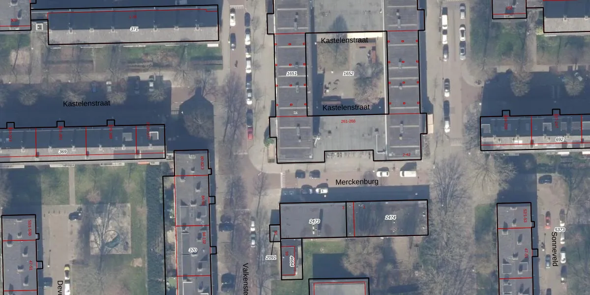 Het perceel waarop Merckenburg 30 staat heeft een oppervlakte van 2072 m². Dit is een zeer groot perceel. De perceeloppervlakte wordt geregistreerd door het Kadaster. Gedetailleerde informatie over de maten van dit perceel kunt u vinden in het rapport Kadastrale kaart met maatvoering van Merckenburg 30.